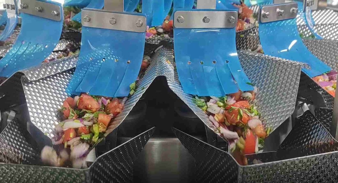 Alat penimbang multi-kepala (juga dikenal sebagai alat penimbang kombinasi) adalah mesin penimbang kecepatan tinggi dan akurasi tinggi yang umum digunakan dalam kemasan makanan dan industri lainnya.Mesin berisi beberapa kepala penimbangPerangkat lunak sistem memilih kombinasi ember skala mana yang akan mencapai berat target yang diinginkan dengan presisi optimal.