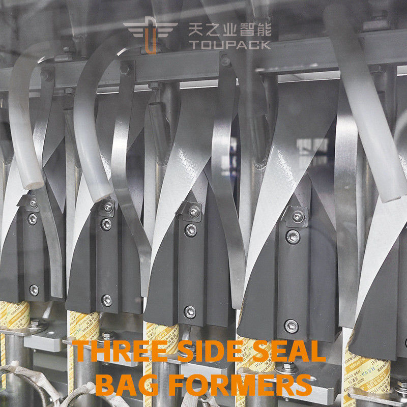 Automatic vffs food seasoning liquid paste sauce honey ketchup oli ice pop dressing packing machine vertical toothpaste shower gel shampoo 4 side seal multilane 4 lane 6 lane 10 lane packaging machine liquid pump.